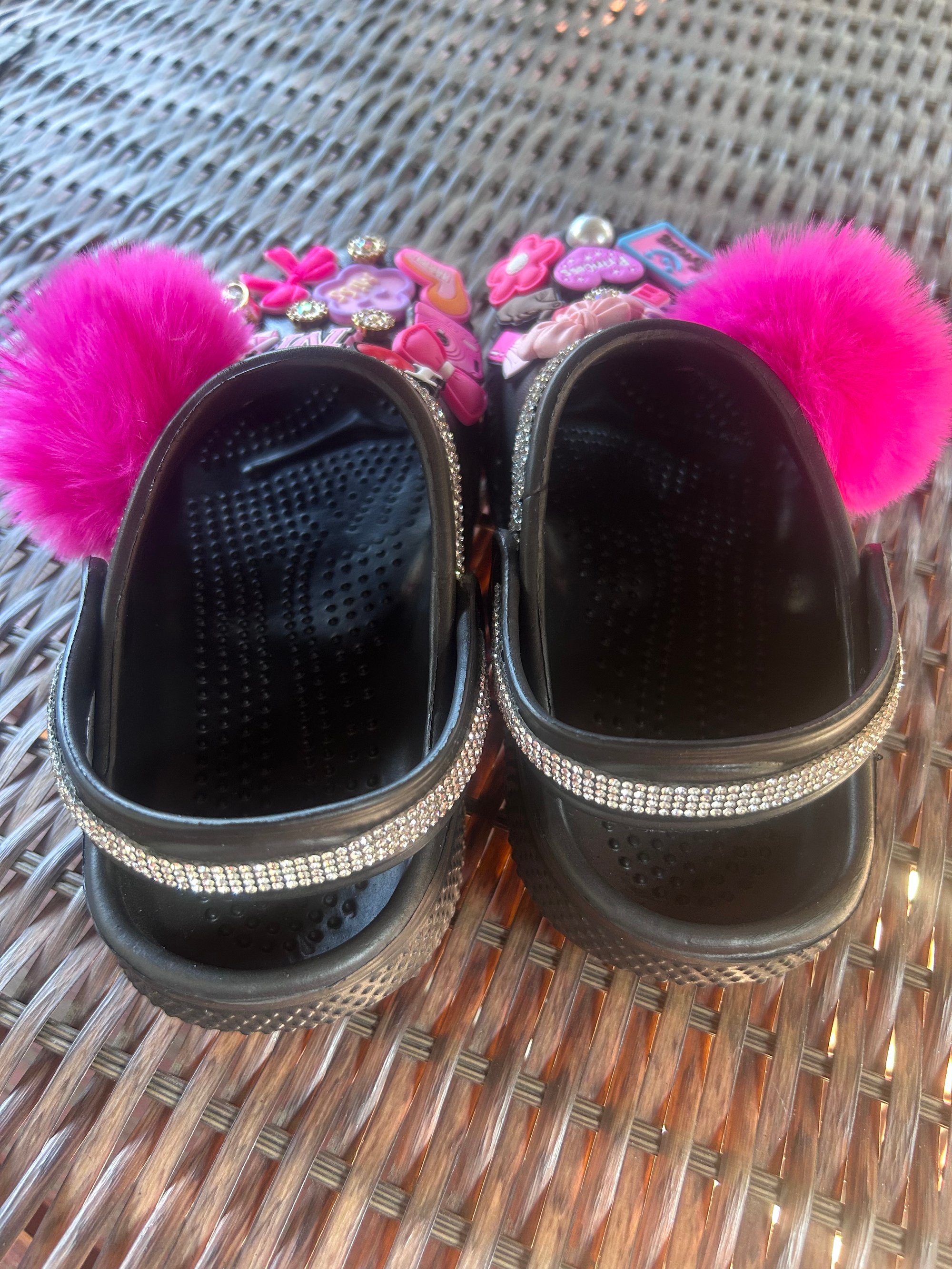 These Cute Clogs Are beautiful And fun! Perfect for on the go and when it's time to stand out! Each Charm is hand picked to fit the theme of the clog. And we all know Rhinestones are a kids best friend!! So we've placed Rhinestones across the top of the clog and across the strap that supports the ankle. Hand crafted with Love.