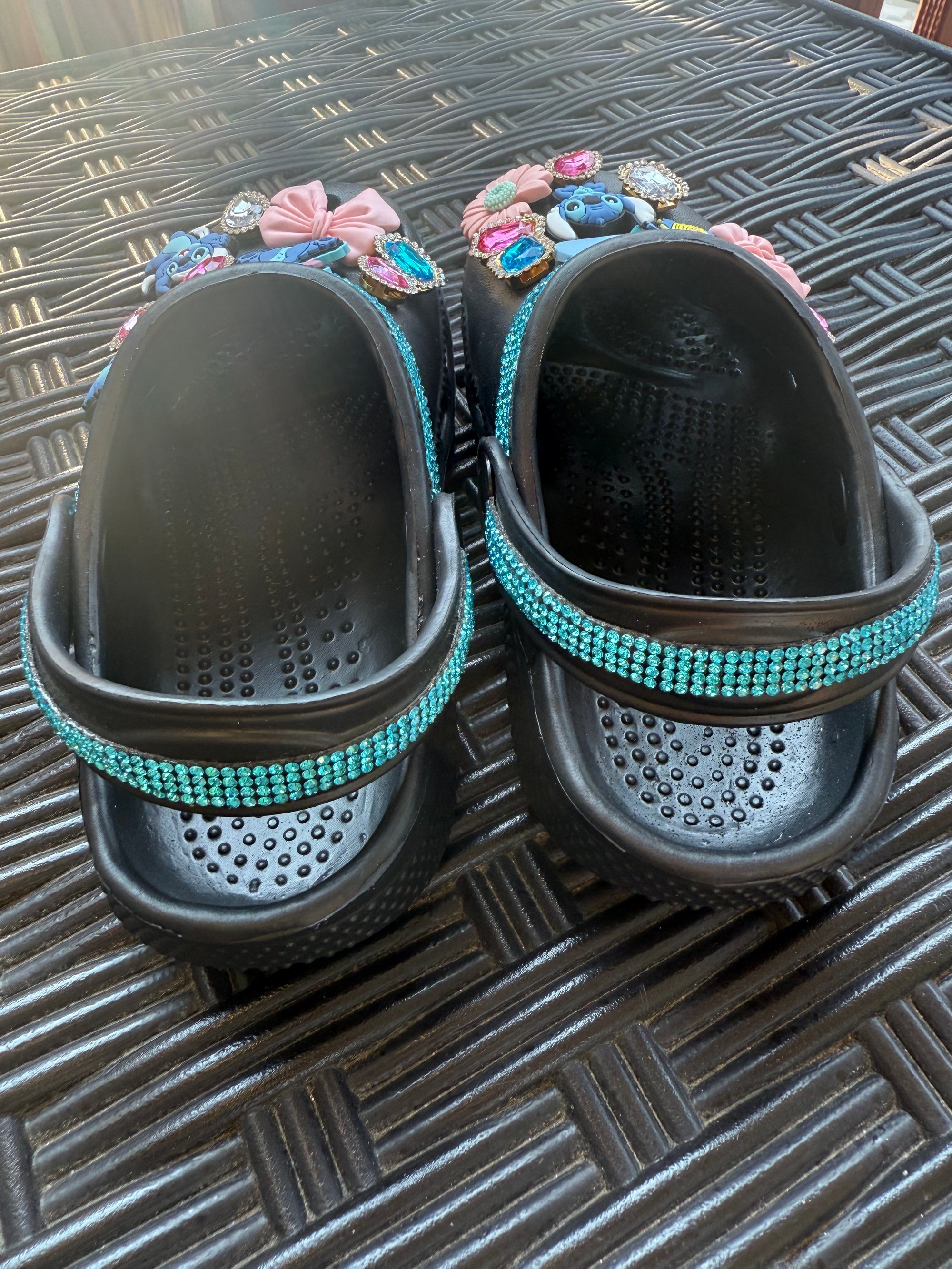 These Cute Clogs Are beautiful And fun! Perfect for on the go and when it's time to stand out! Each Charm is hand picked to fit the theme of the clog. And we all know Rhinestones are a kids best friend!! So we've placed Rhinestones across the top of the clog and across the strap that supports the ankle. Hand crafted with Love.